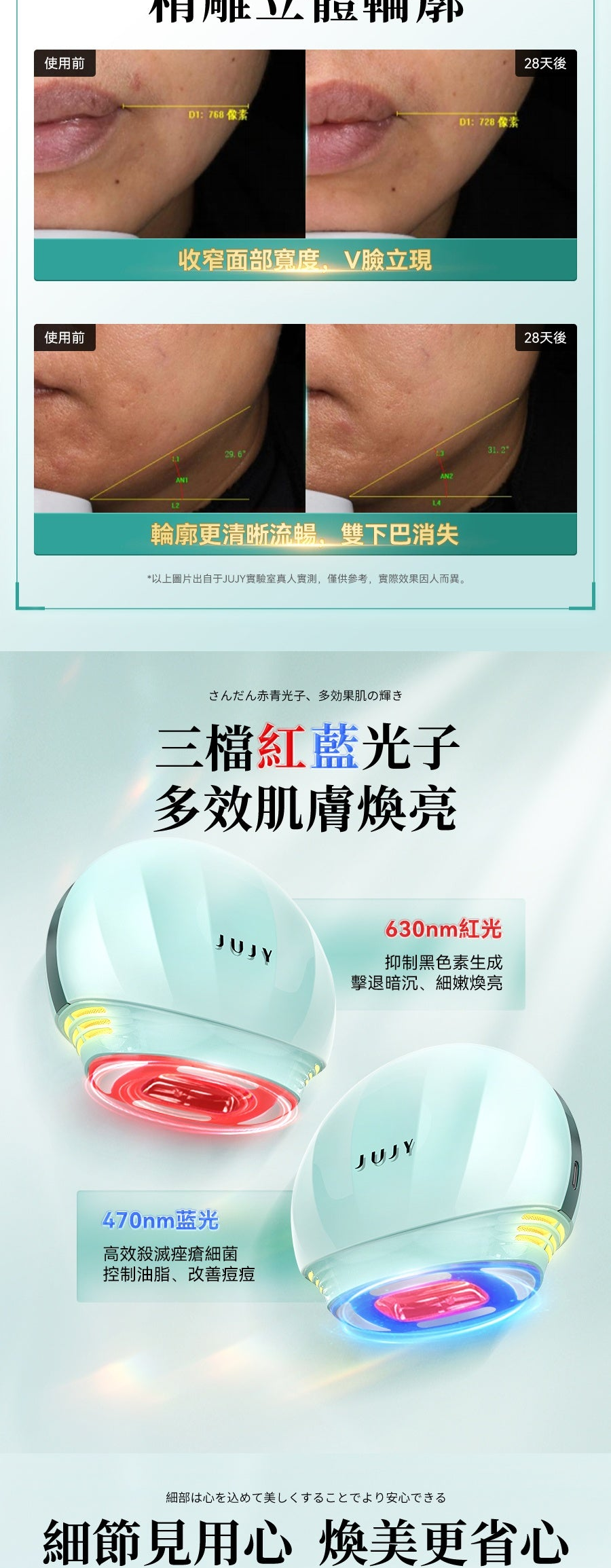 2.結合雙頻EMS微電流+紅藍光子,全方位抗衰提升緊緻嘭彈。