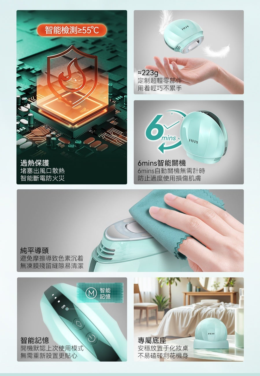 5.耐高溫藍寶石+NTC控溫+過熱保護,安全不傷膚,敏肌可用。