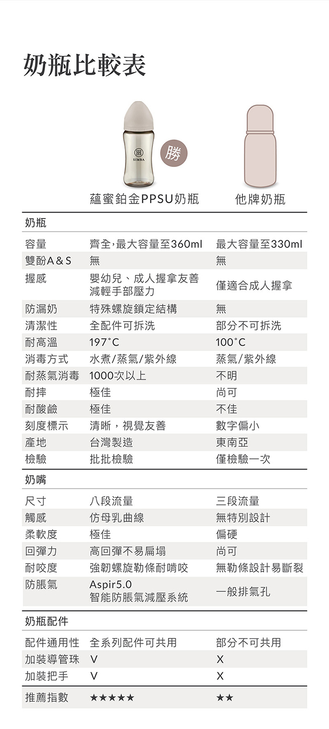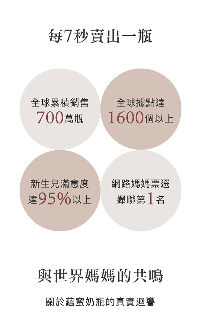 繼前幾代奶瓶在媽媽圈大受好評!小獅王辛巴擁有近30年日積月累的製瓶經驗,直擊新生家庭的需求,再次打造顛峰水準的奶瓶之作。蘊蜜鉑金PPSU防脹氣奶瓶與世界媽媽共鳴,更懂你的需求。