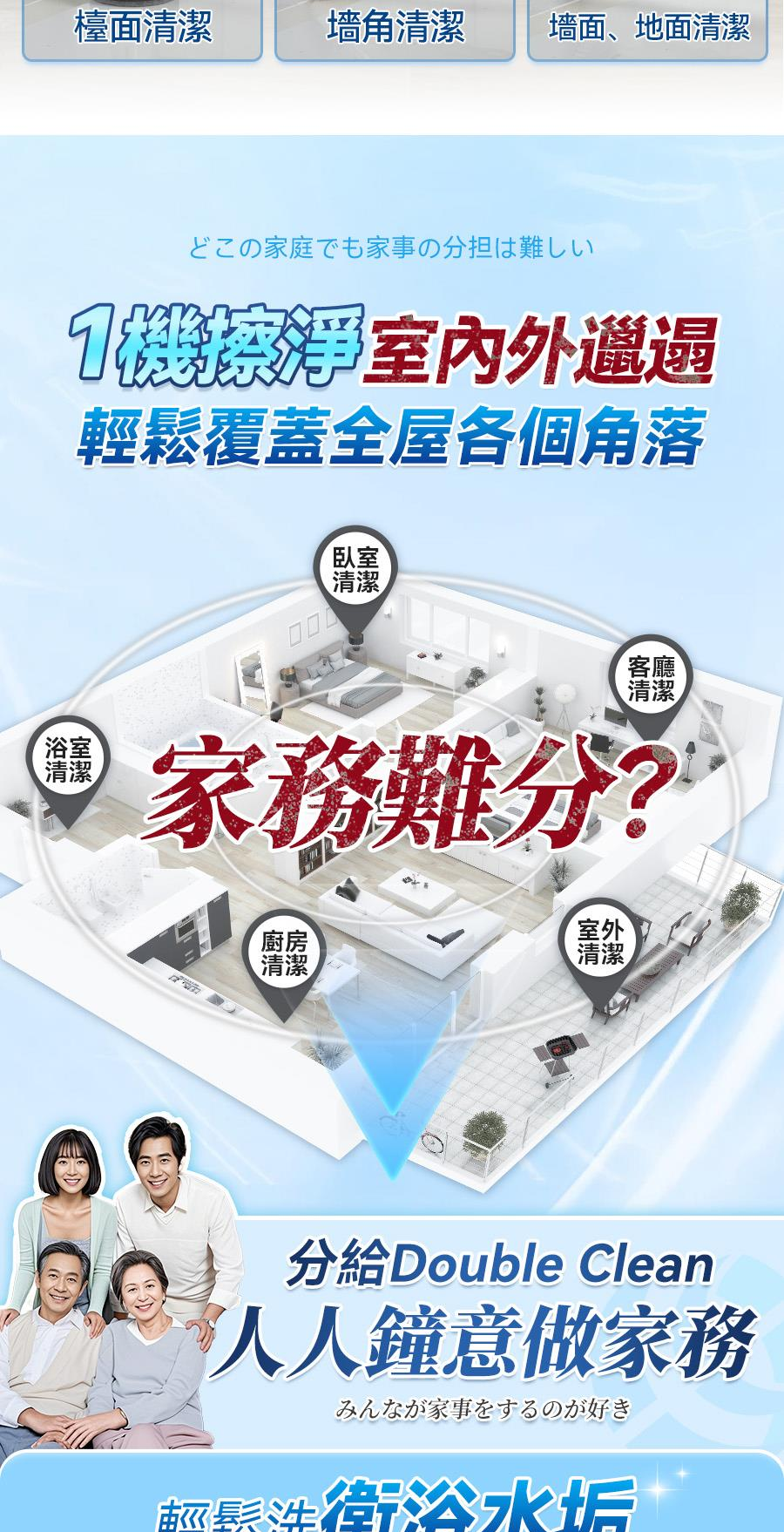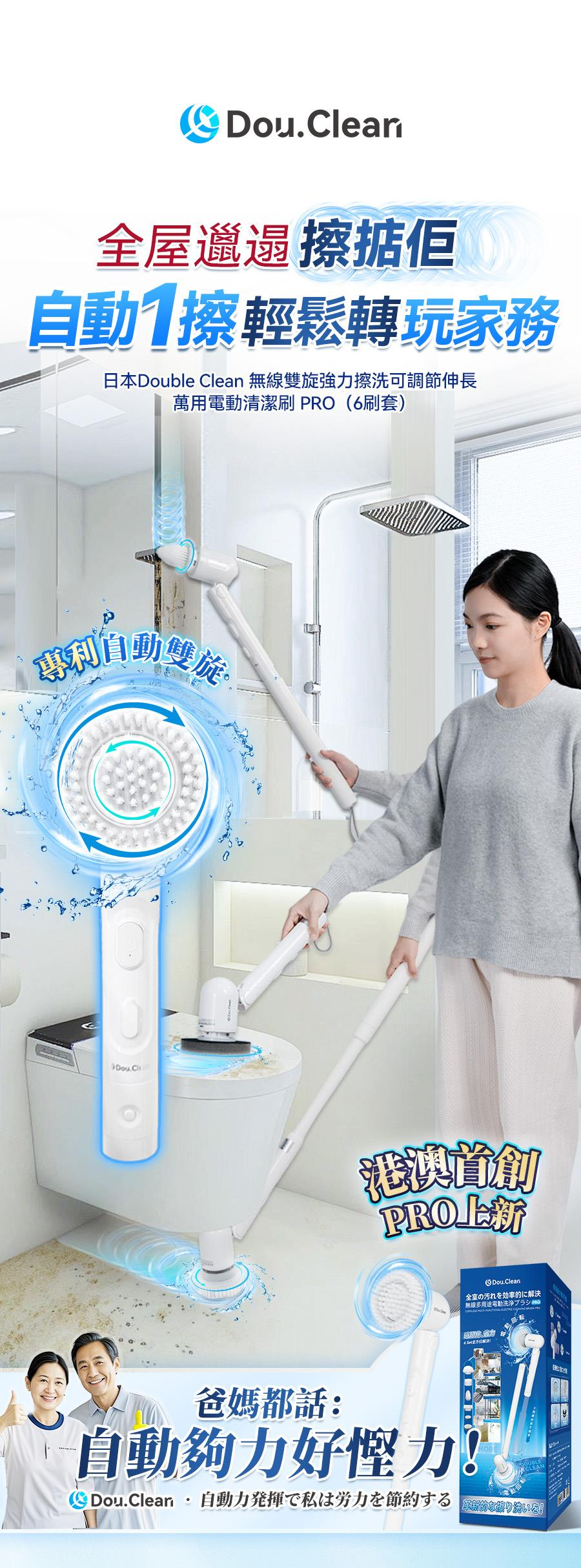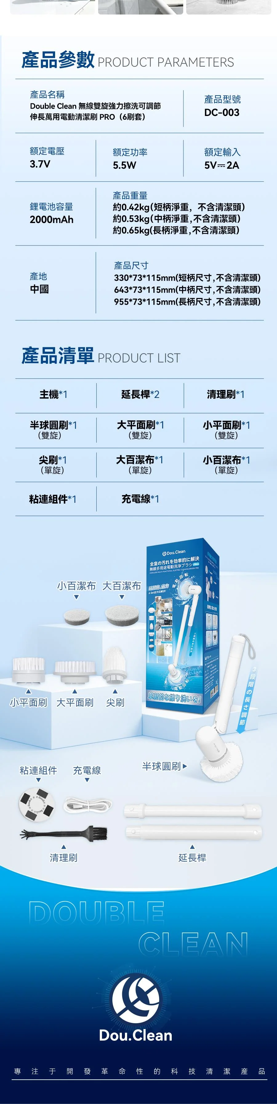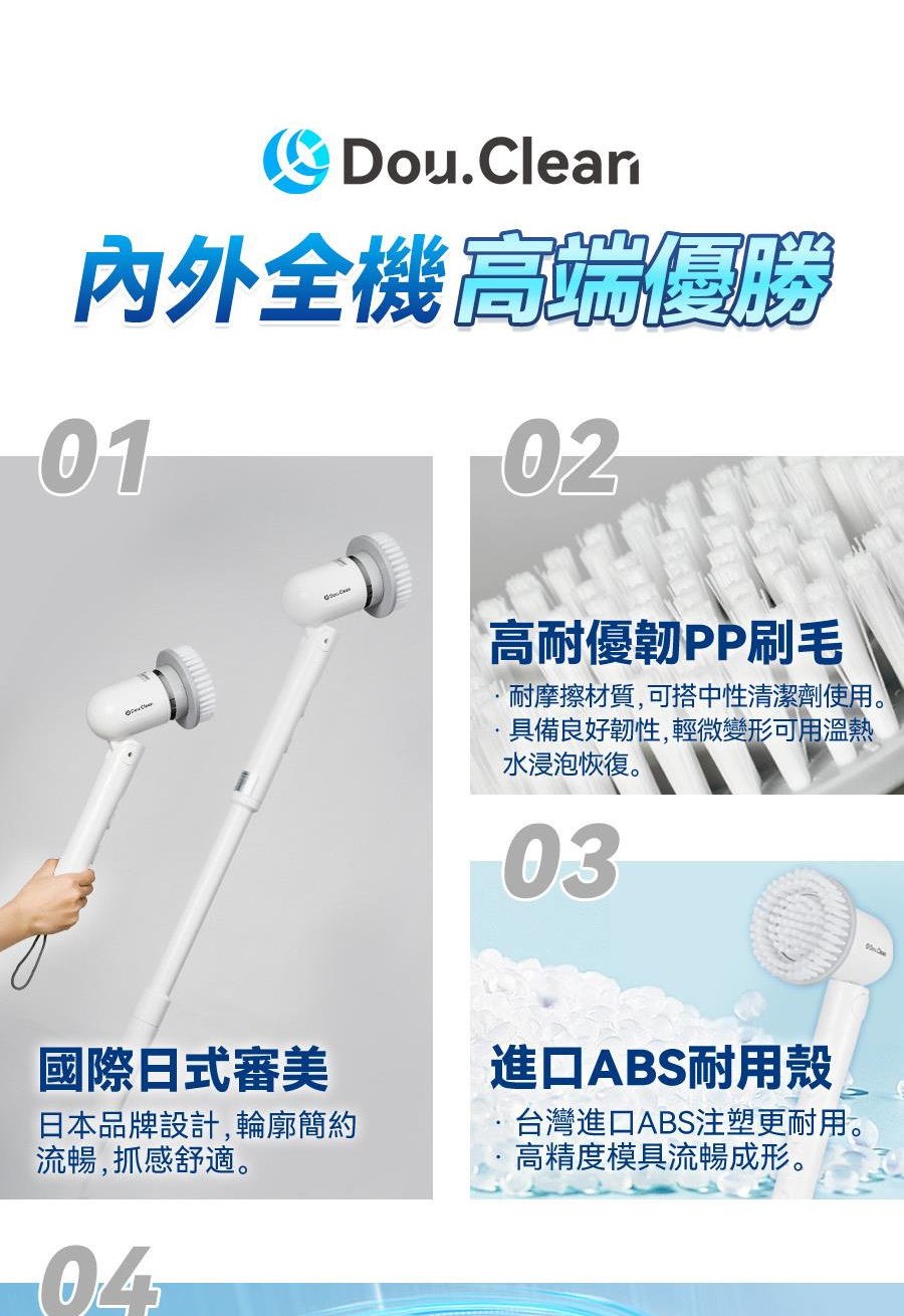 1.大扭力高轉速電機搭配6種清潔頭,適用不同材質表面的髒汙清潔。