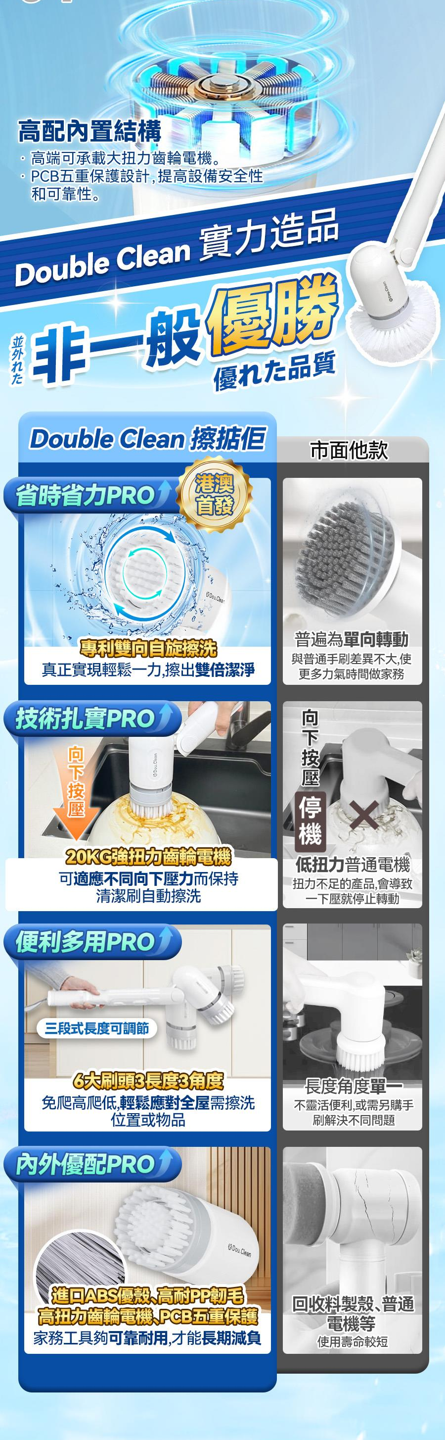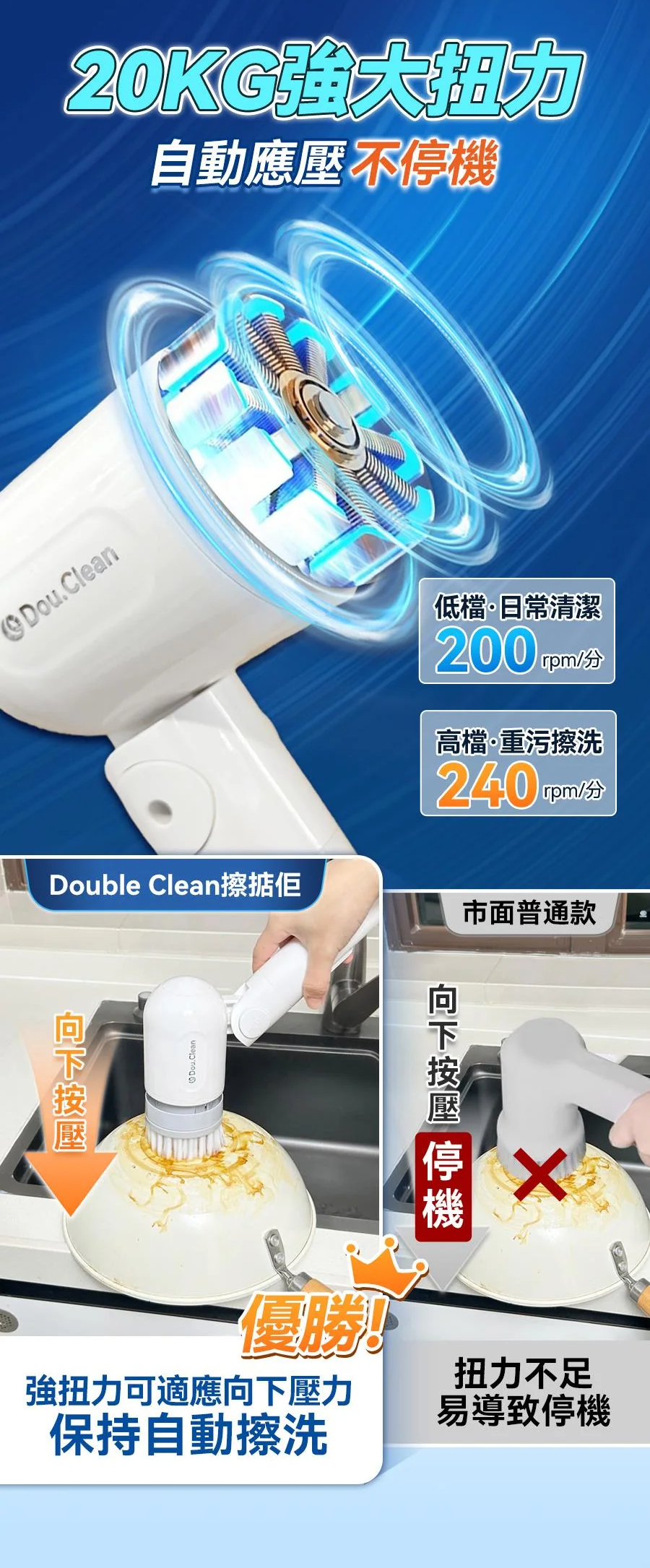 2.首創雙向轉動刷頭,雙向去汙更高效,雙向力矩抵消更易控省力。
