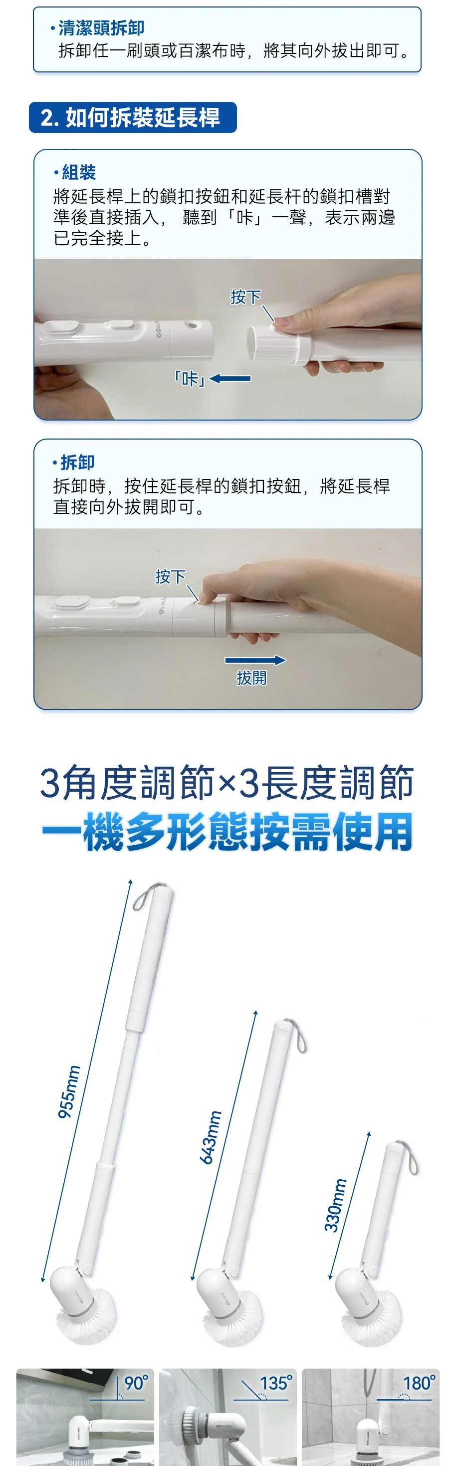 4.3種長度可調,多場景適用輕鬆高效清潔。