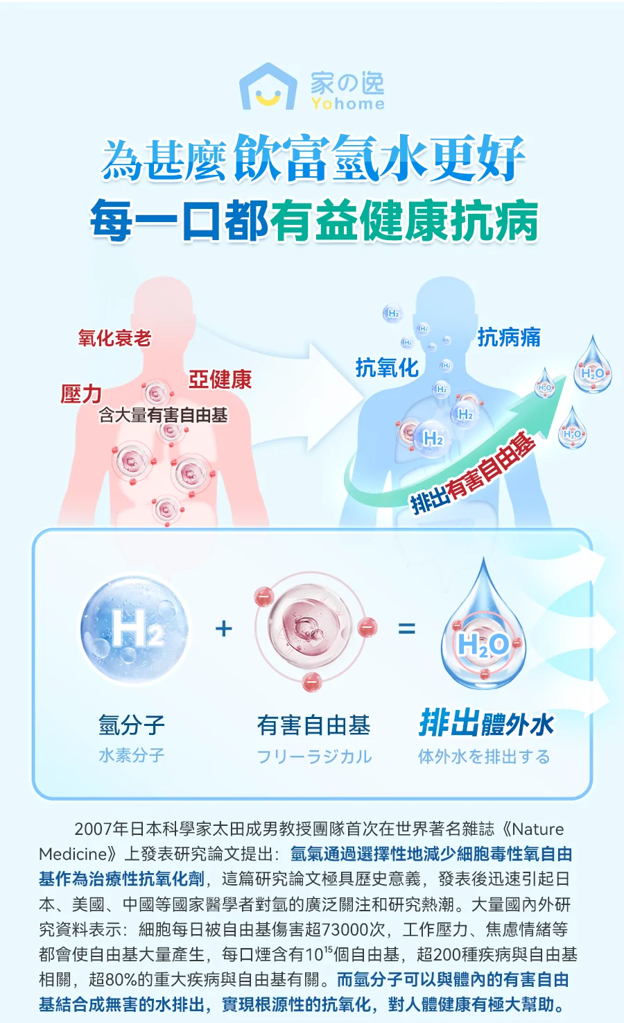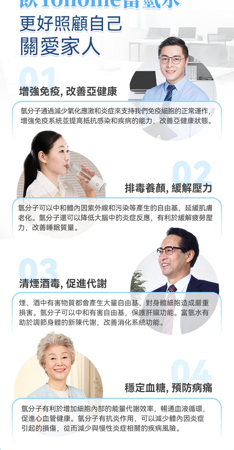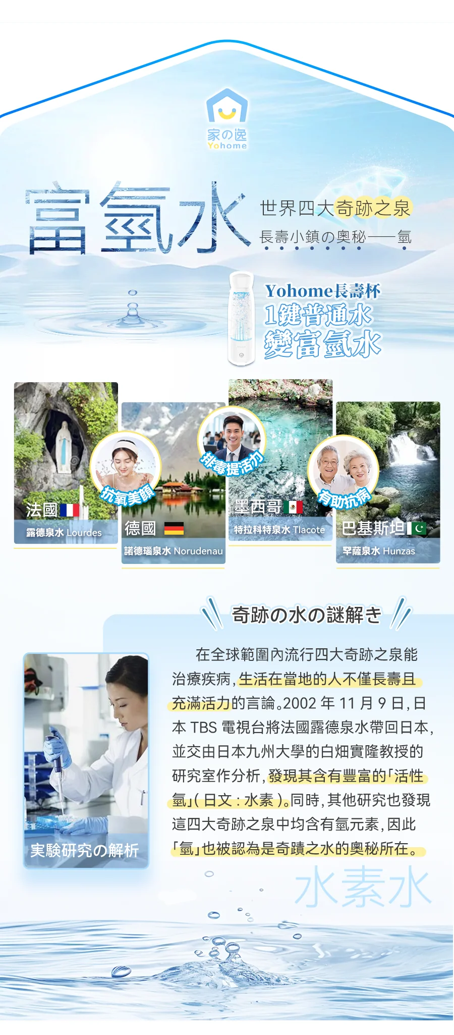 2.升級製氫技術,SPE膜電極氫氧分離+純氫電解技術+保壓洩壓功能,產生小分子團水的同時排除餘氯臭氧及重金屬等有害物質,不限制水質,熱水也可用,飲用更加便利健康放心