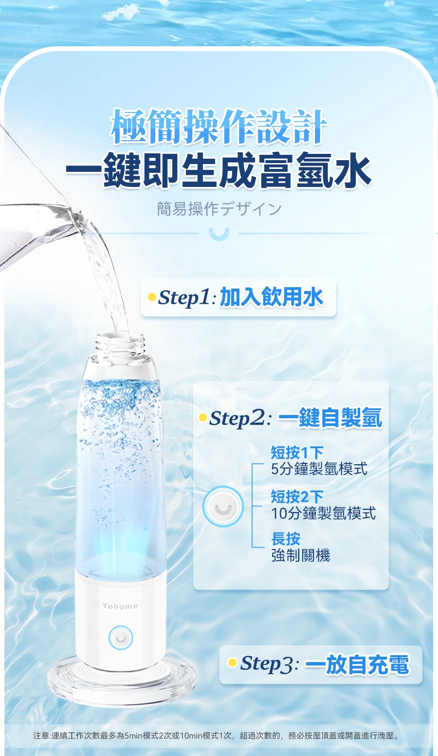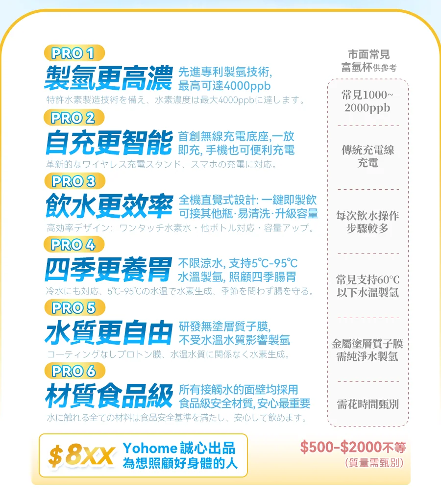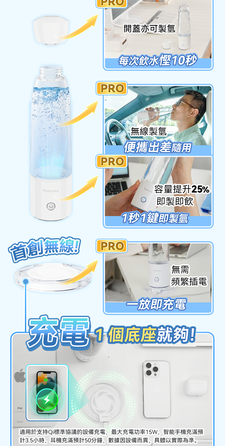 1.港澳首創首款無線充電富氫水杯,放到底座上即放即充,使用超方便;同時配置磁吸充電線,便於出行攜帶。