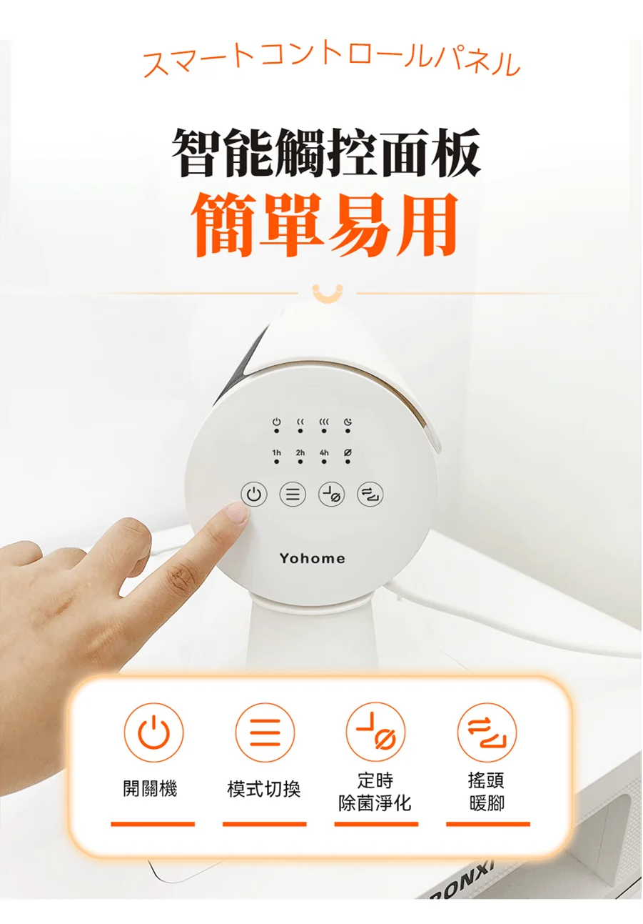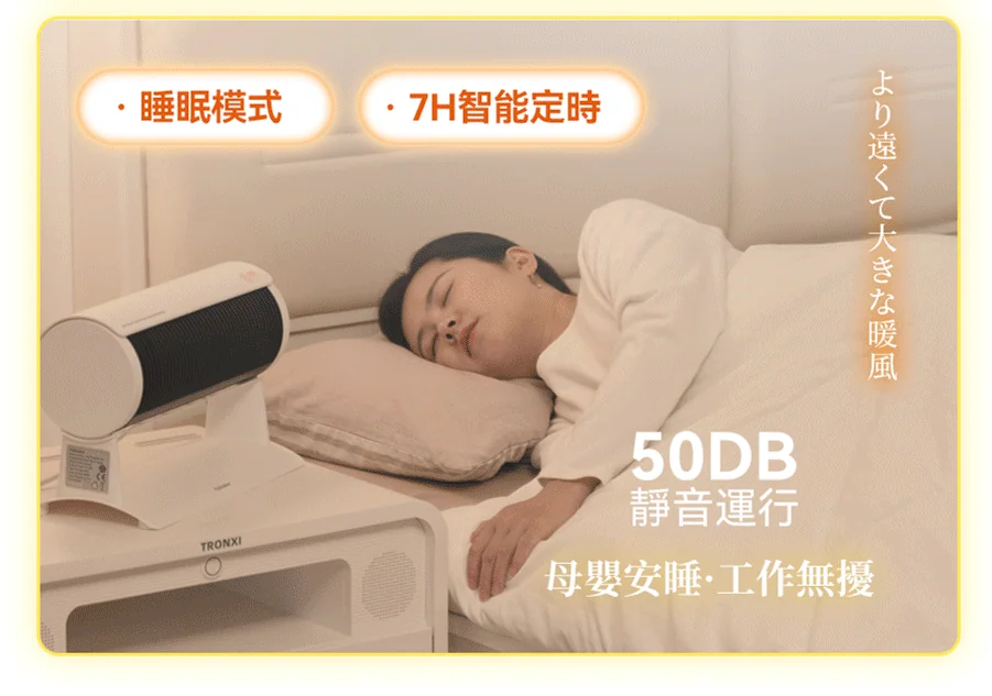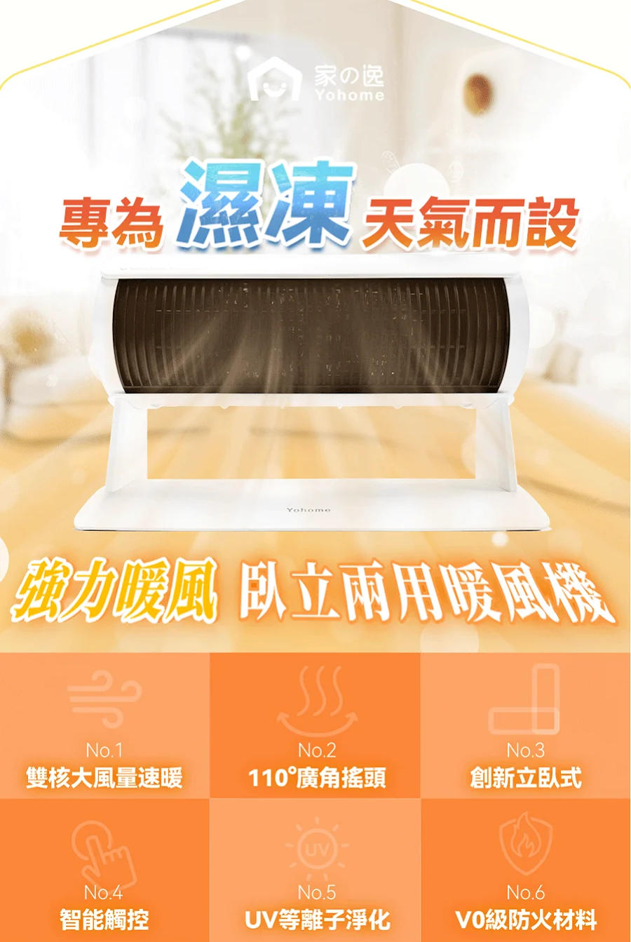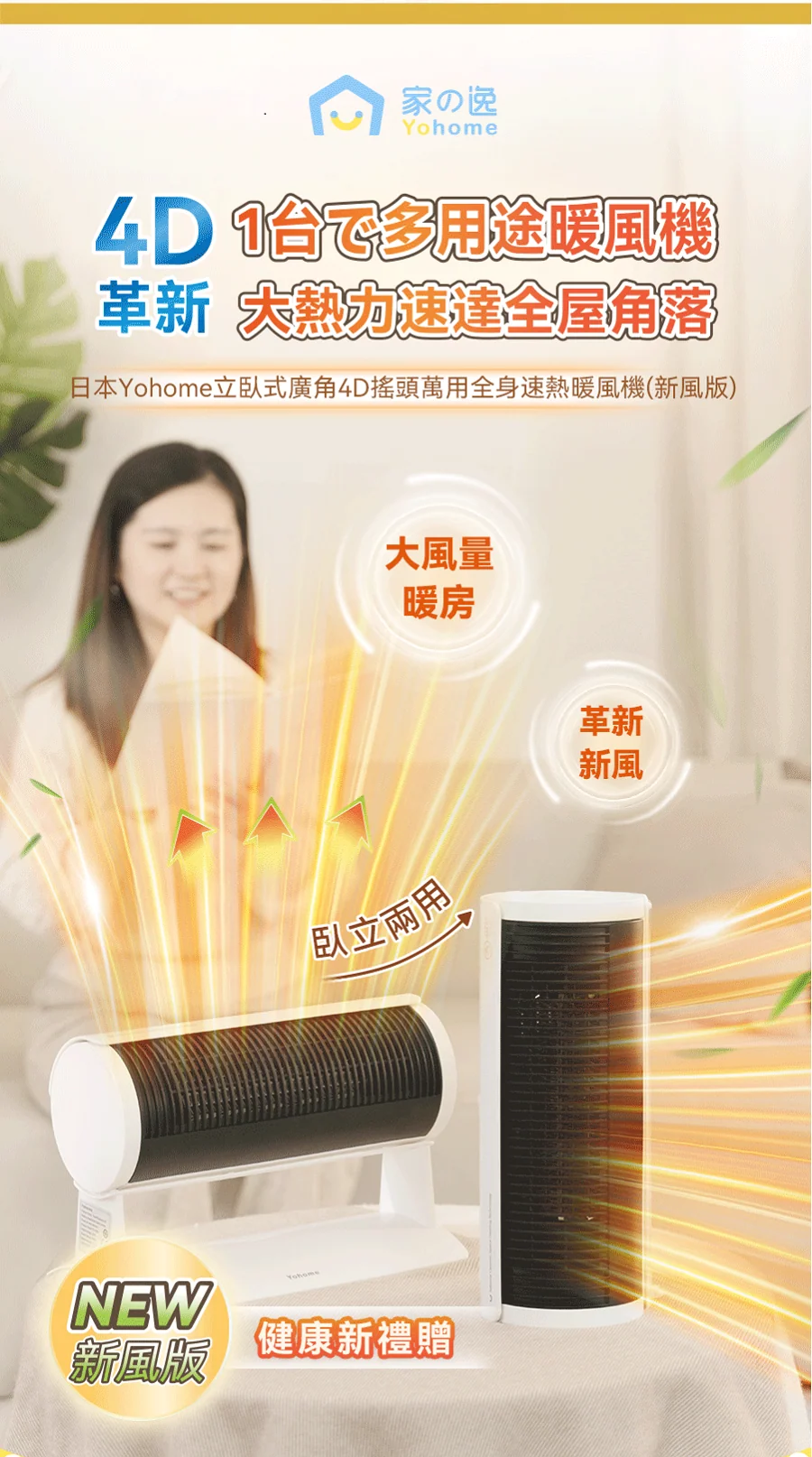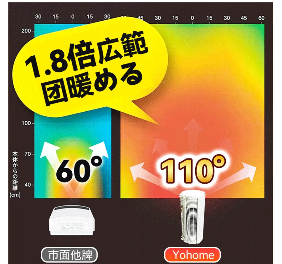 1.上下自動搖頭110°,縱向放置即變成左右自動搖頭110°,廣角送暖、循環加熱,隨時調節暖風送達位置。