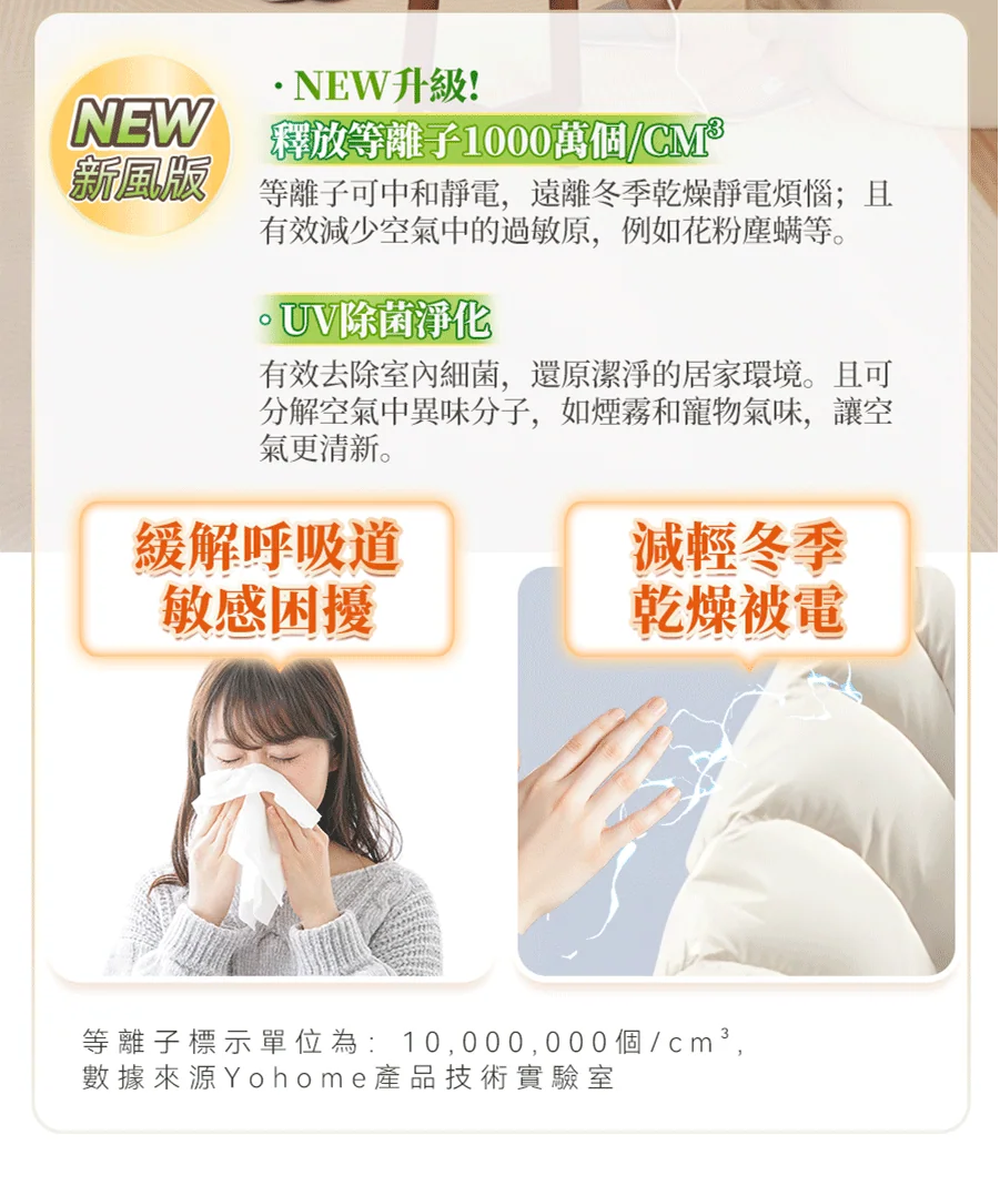 4.UV+等離子,滅菌淨化暖風同時還可以中和靜電遠離冬季乾燥靜電煩惱。