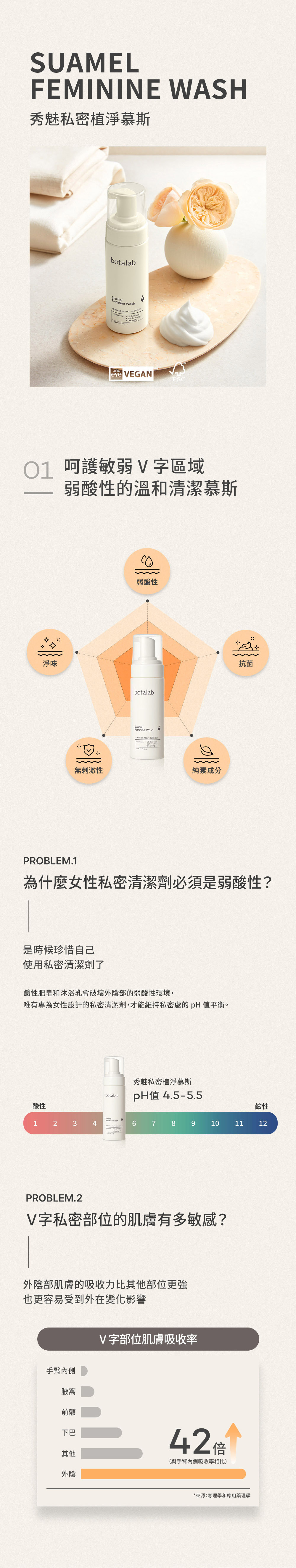 採用溫和低敏配方,有助維持私密肌的酸鹼平衡,適合敏感部位使用。提供滋潤保濕與衛生護理,讓您一整天感到清爽舒適。
