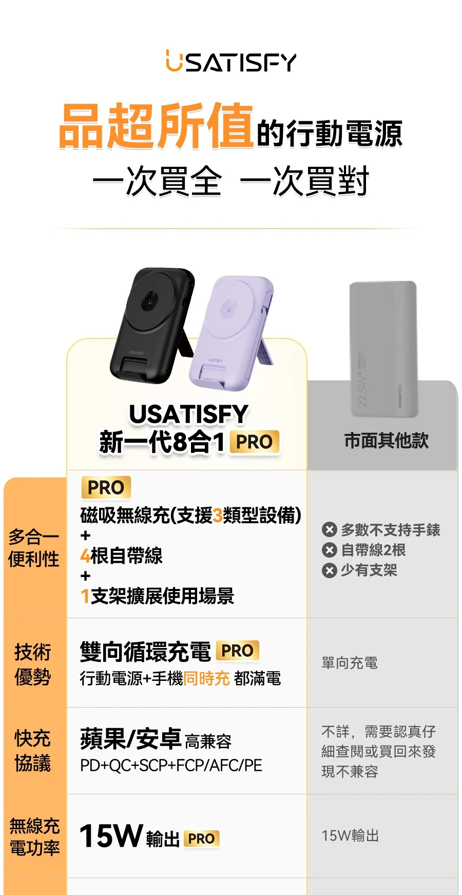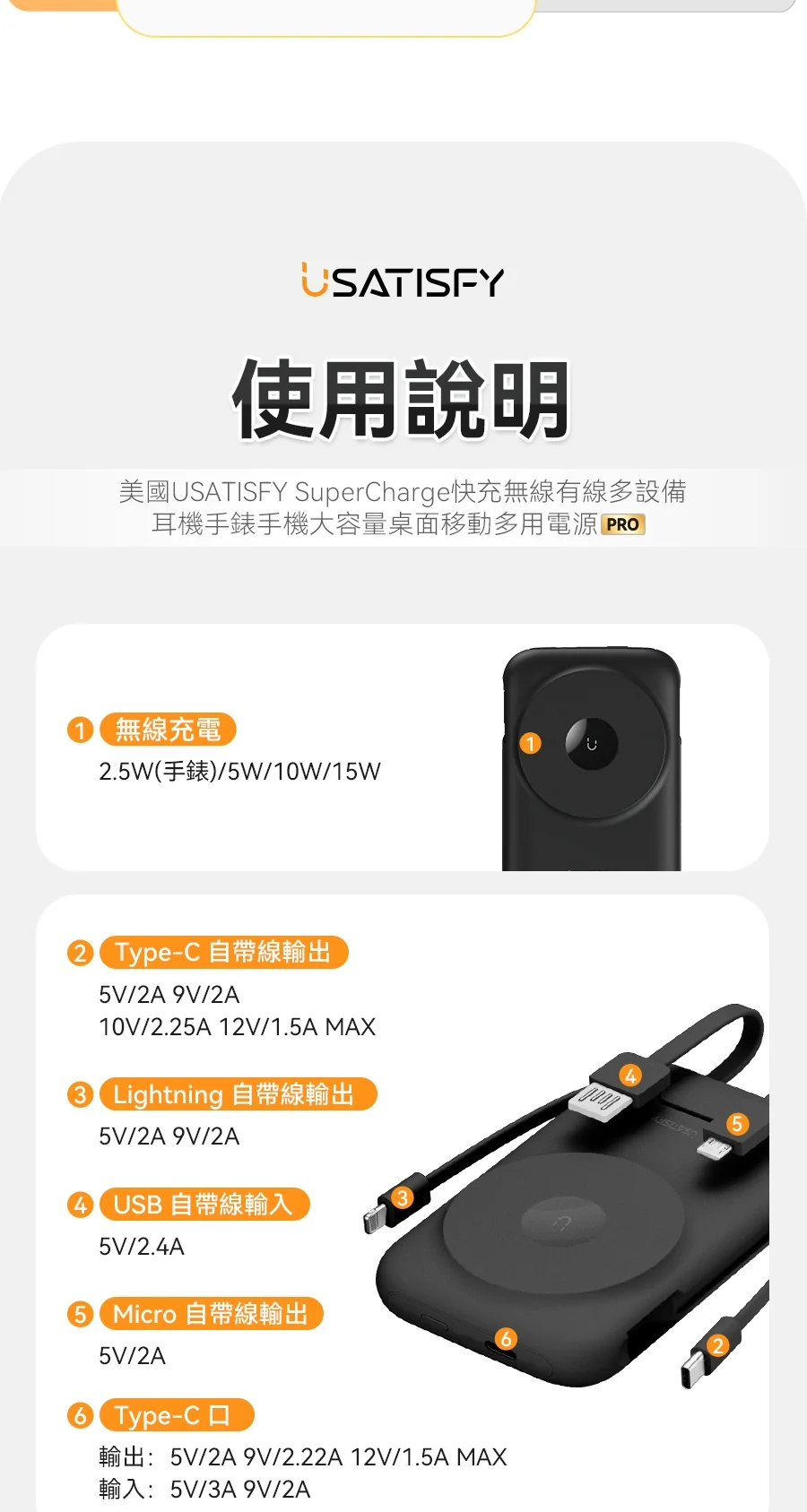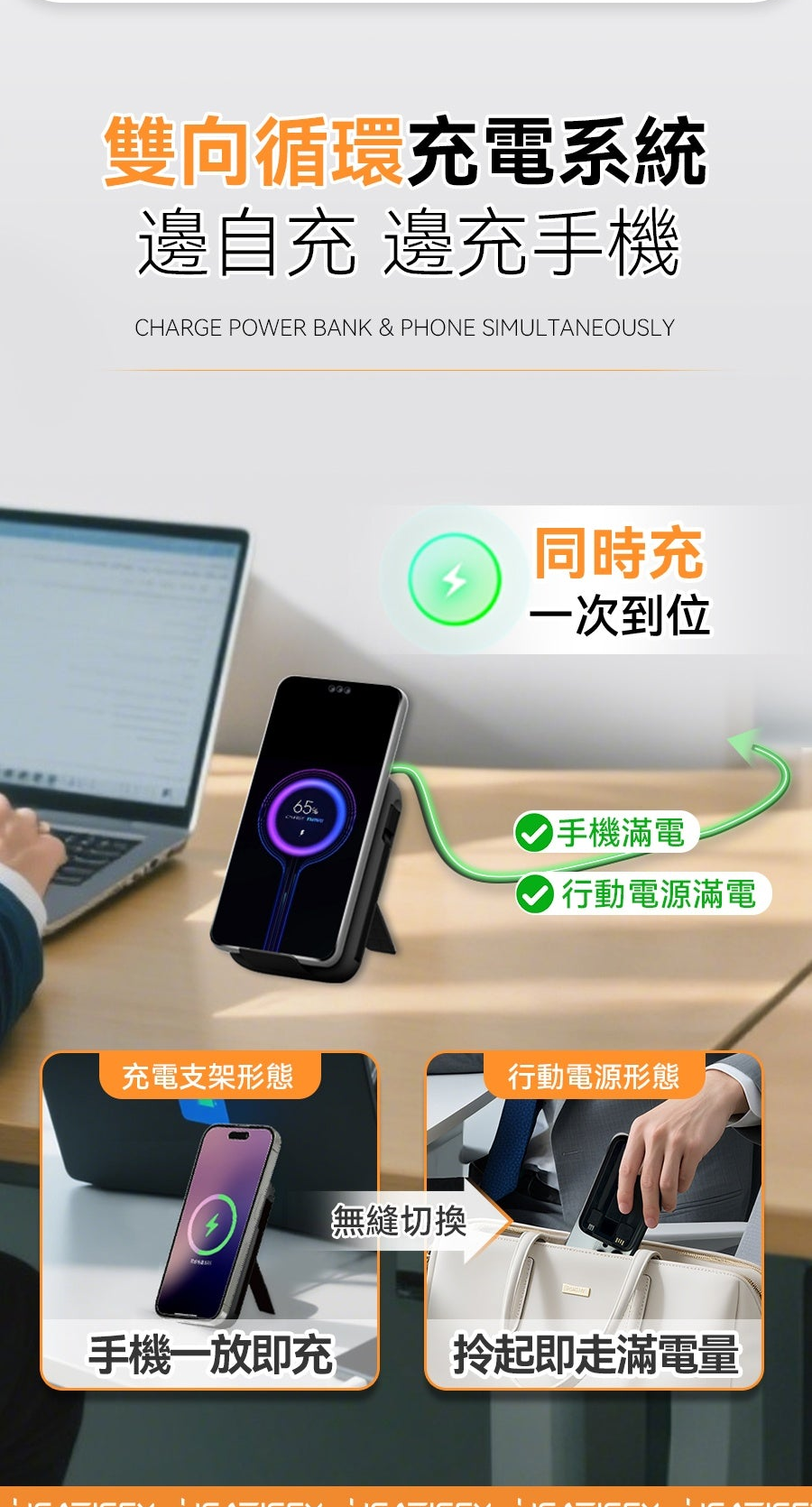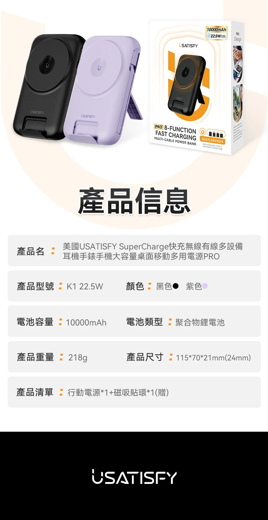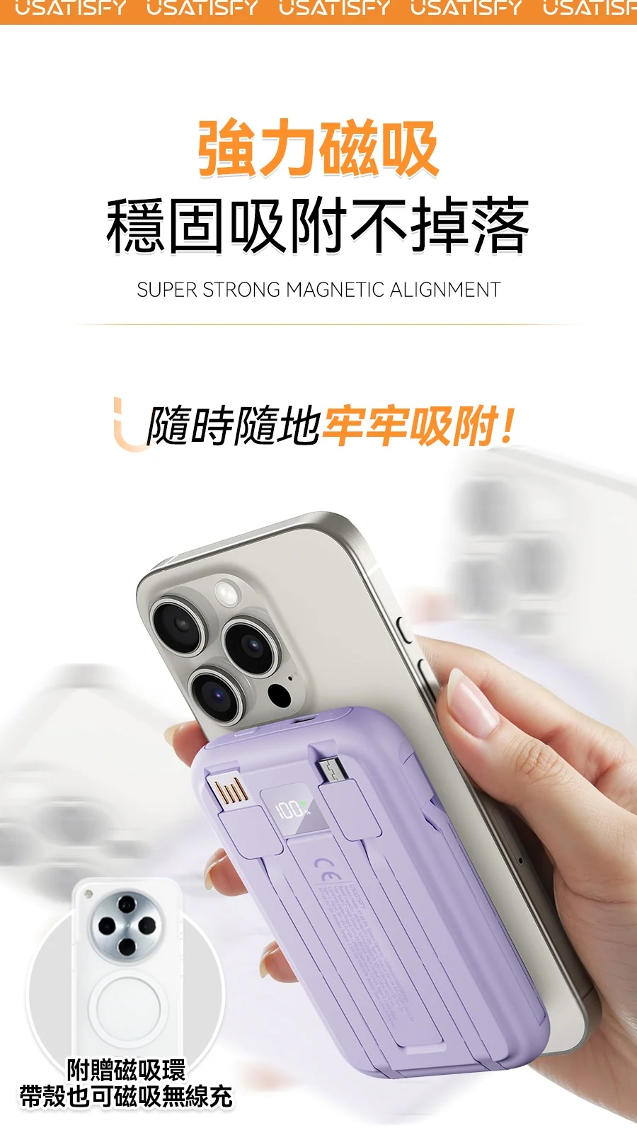 1.無線快充:支援手機/耳機/手錶無線磁吸充。