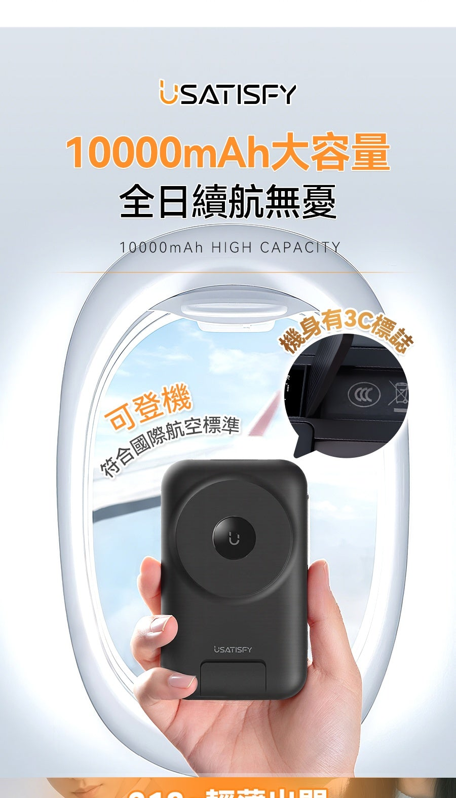 6.外出便攜:10000mAh大容量,可隨帶上機。