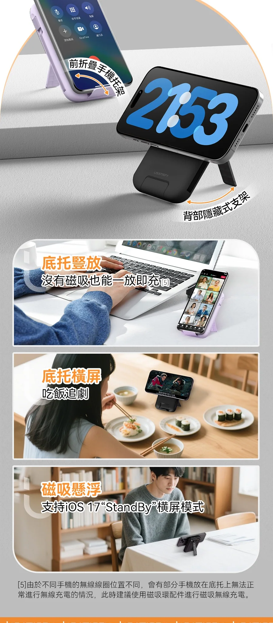 3.磁吸穩陣:手機帶殼都可無線充, 吸附穩固。
