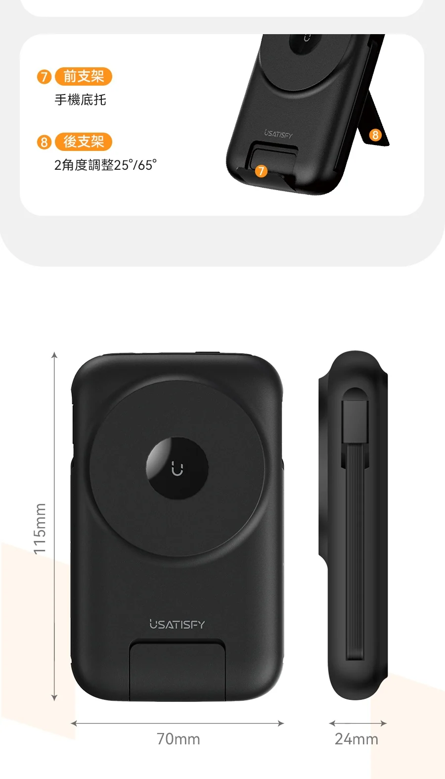 4.多用支架:雙角度支架, 手機橫豎屏自由放。