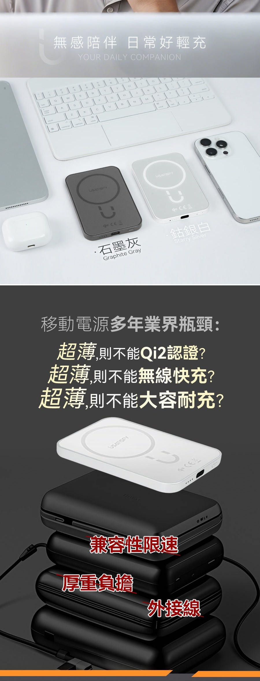 2.8mm超薄設計,輕便攜帶無感使用隨時補能。