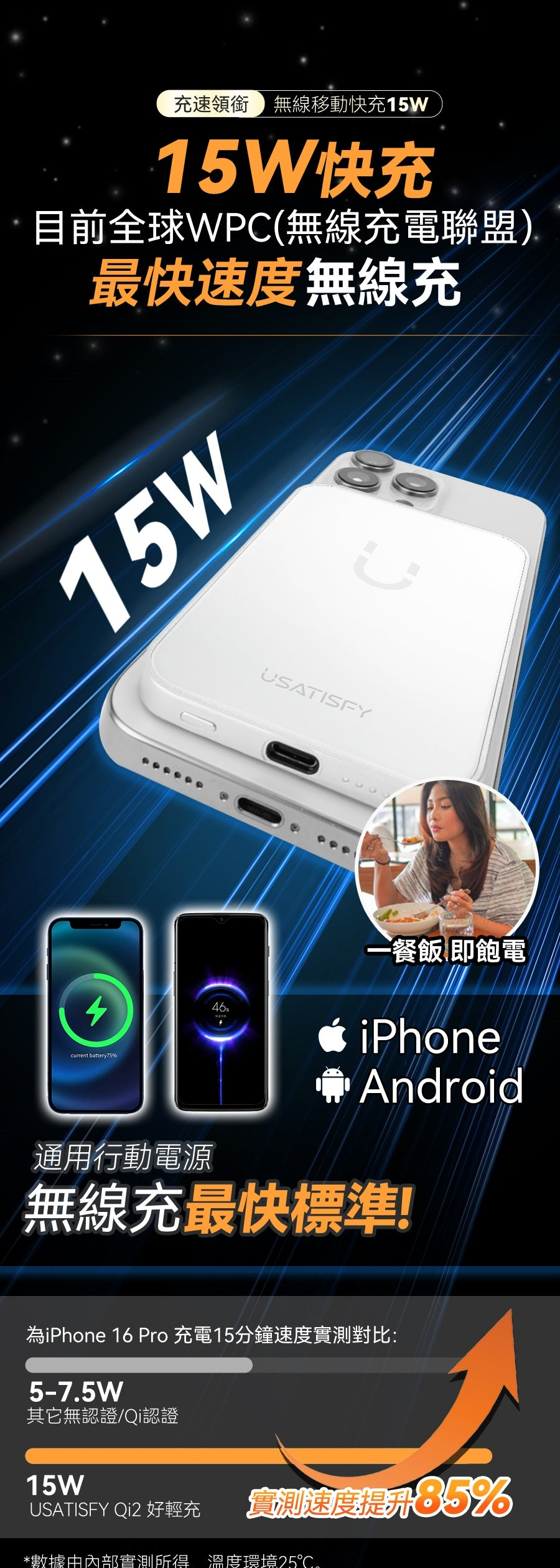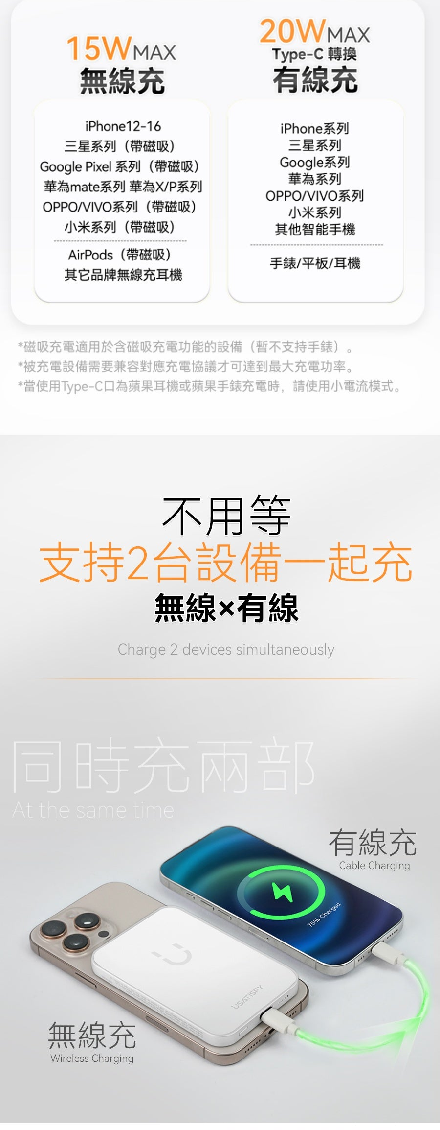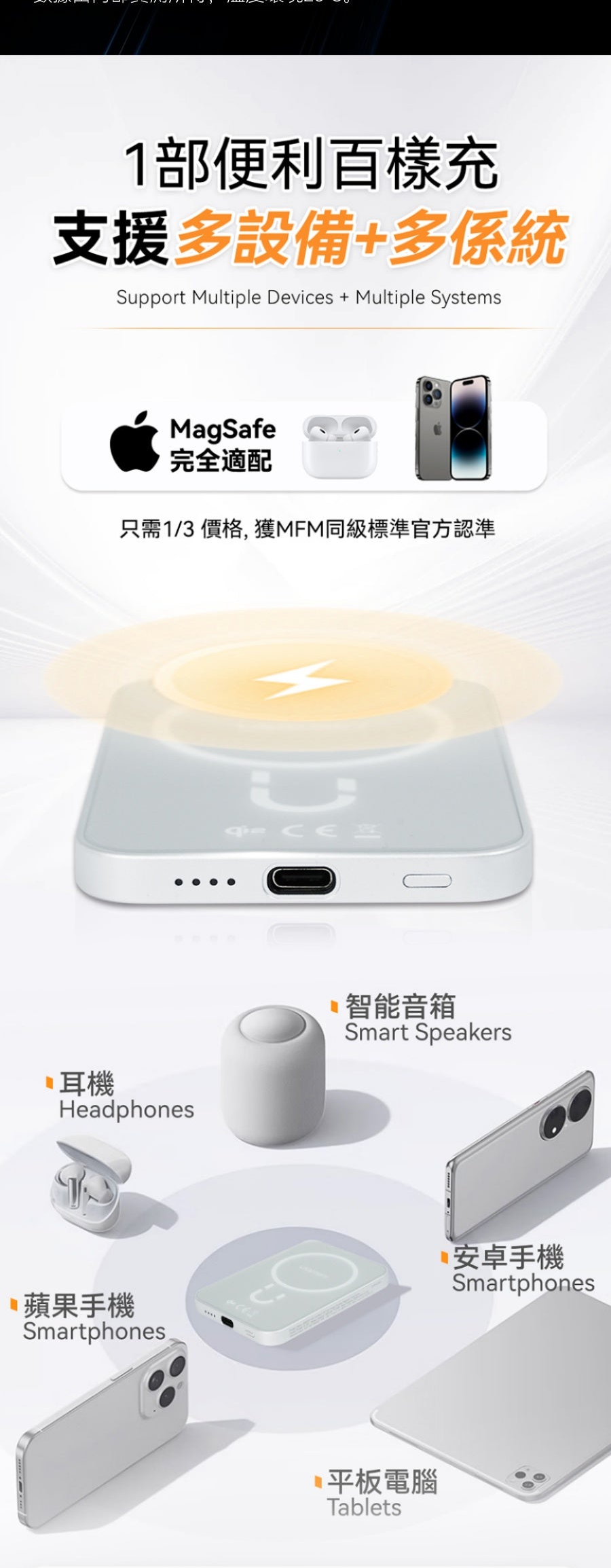 1.qi2認證無線充電,蘋果安卓設備充電都高效可靠。