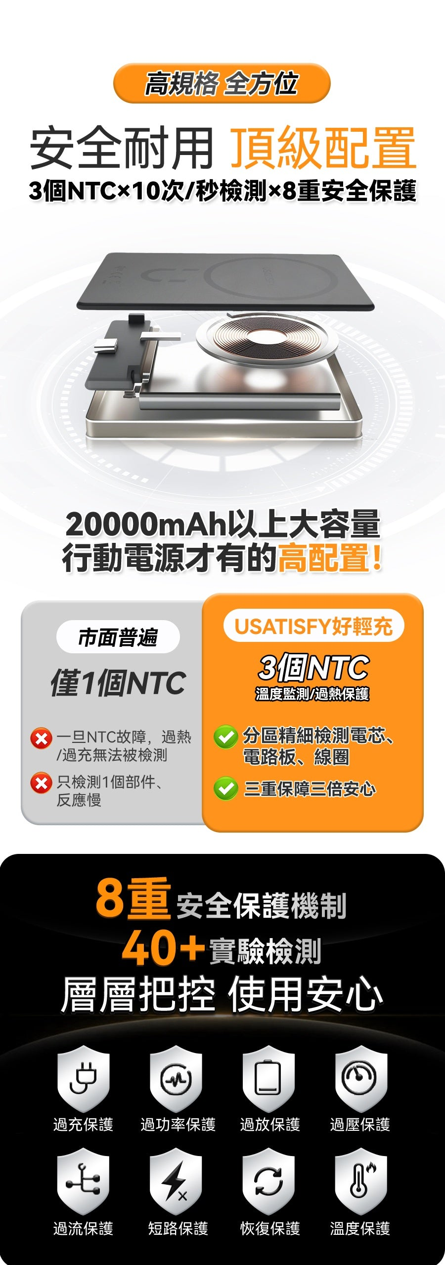4.選用純鈷高密度鋰離子電芯+三重NTC,帶來高循環壽命與良好熱穩定性。