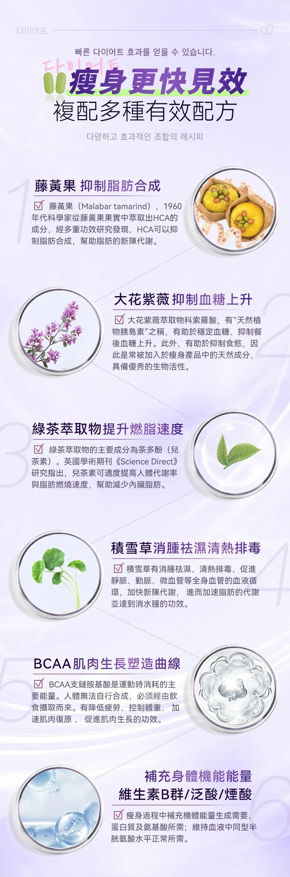 紫錠 專注減少體脂和BMI指數,促進保濕和抵 制紫外線
