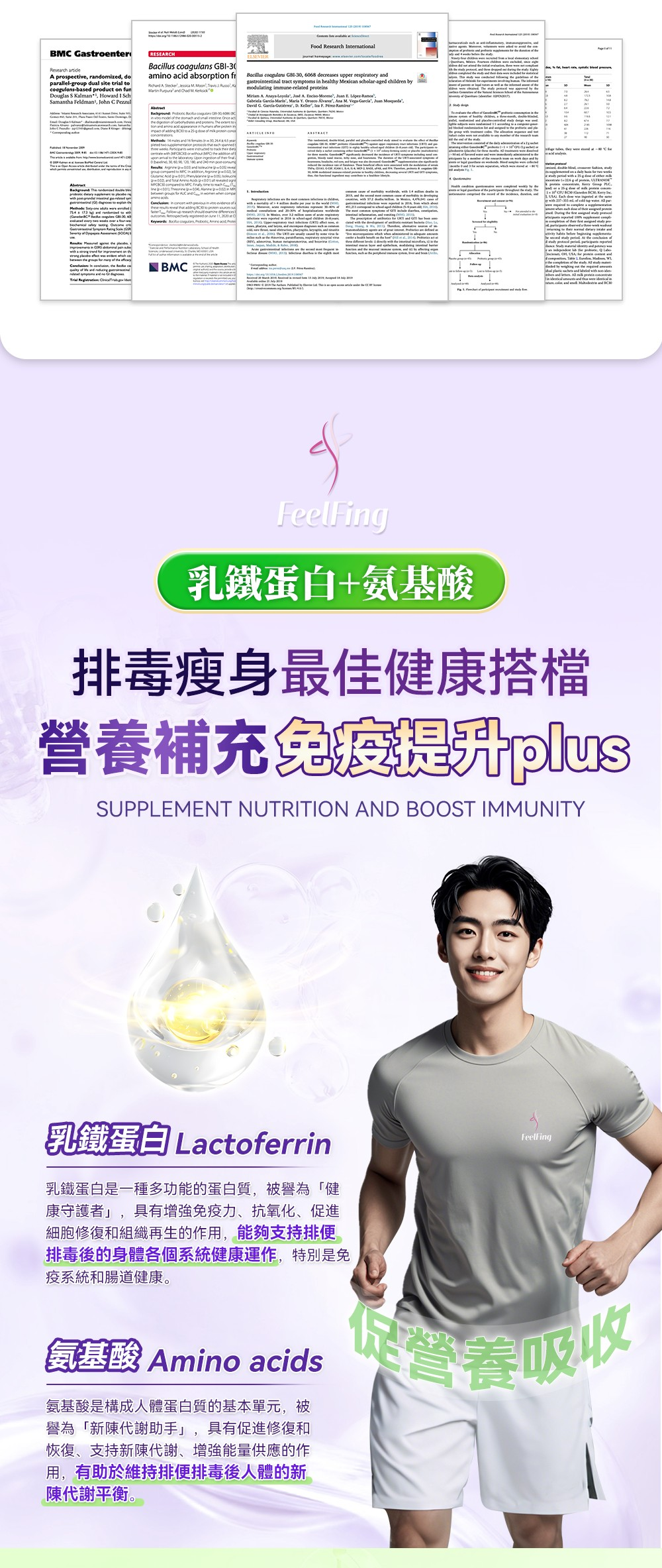 4. 協同乳鐵蛋白和氨基酸支持排毒排便後的營養補充,促進吸收,免疫力提升,排毒排