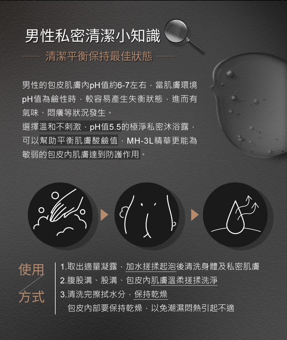 ‧獨特男性私密肌膚清潔設計,深度潔淨不緊繃。
