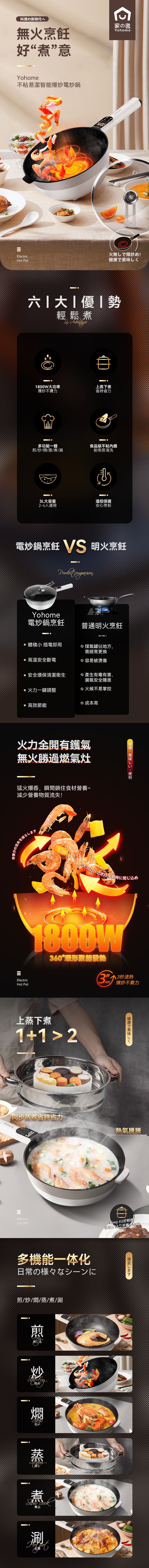 1.電炒鍋1800W猛火爆炒,火力媲美電磁爐,鑊氣十足